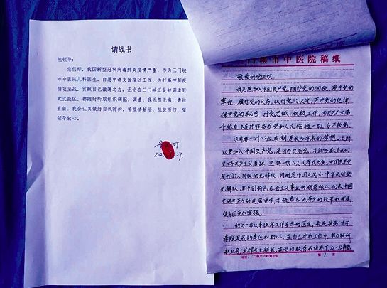 然而,病床上的寧銀河,職責不倒、精神不倒、意志不倒!她毅然地拿起紙筆,一邊以“黨和人民的利益高于一切”的政治覺悟,鄭重地寫出了爭取火線入黨的入黨申請書;一邊以中西醫(yī)結合治療嬰幼兒肺部及呼吸道感染的技術專長,鄭重地寫出了爭取第一序列支援武漢的請戰(zhàn)書。她明白,一份入黨申請書和一份請戰(zhàn)書的疊加,是自己醫(yī)者初心的義無反顧,是自己仁術擔當?shù)牧x不容辭,更是自己赴湯蹈火的無怨無悔……