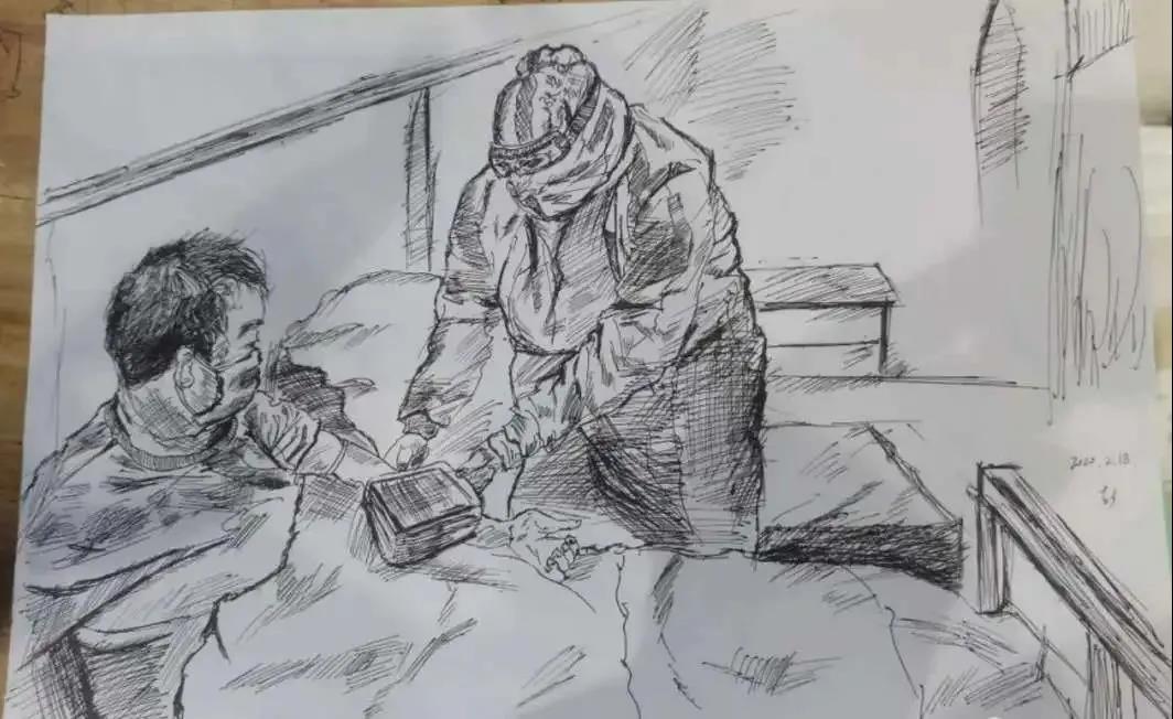 上面這張簡單的素描,是一位在武漢市江漢區(qū)方艙醫(yī)院住院治療的新冠肺炎患者為貴州省安順市中醫(yī)院護理部的主管護師張碧霞畫的。