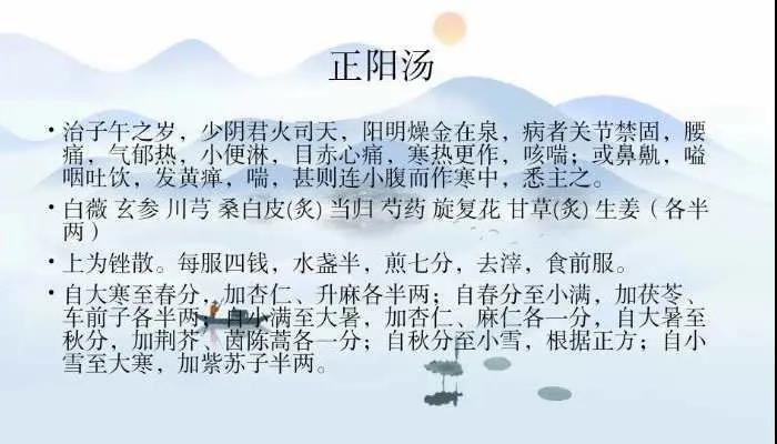據劉威介紹,正陽湯最早出自宋朝陳無擇所著的《三因司天方》,是根據中醫(yī)五運六氣、天人合一的理論所創(chuàng)立的處方。正陽湯主要由白薇、桑白皮、旋復花、玄參、白芍、當歸、川芎、生姜、甘草等藥物組成。
