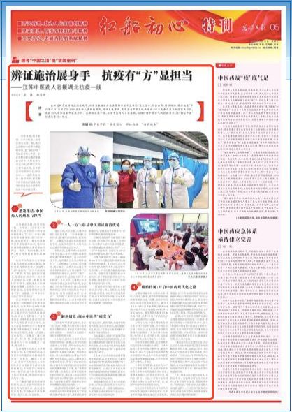 杏林春暖,橘井泉香。江蘇中醫(yī)藥人奮戰(zhàn)在湖北抗疫一線,他們讓獨(dú)特的中藥香氣飄進(jìn)病房里,把“相信中醫(yī)”寫進(jìn)患者的心坎里。在江蘇新冠肺炎確診患者的治療中,中醫(yī)藥參與率近9成;在湖北武漢江夏方艙醫(yī)院,患者接受中醫(yī)藥治療比例達(dá)100%……這組來自抗疫一線的數(shù)字,彰顯著中醫(yī)中藥在新冠肺炎疫情防控這場(chǎng)沒有硝煙的戰(zhàn)爭(zhēng)中的卓越力量。