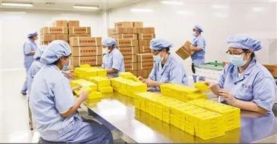 圖為4月28日,在聚協(xié)昌(北京)藥業(yè)有限公司位于北京市大興區(qū)采育經(jīng)濟(jì)開(kāi)發(fā)區(qū)的生產(chǎn)車間里,工人們正在檢查一批金花清感顆粒的包裝。