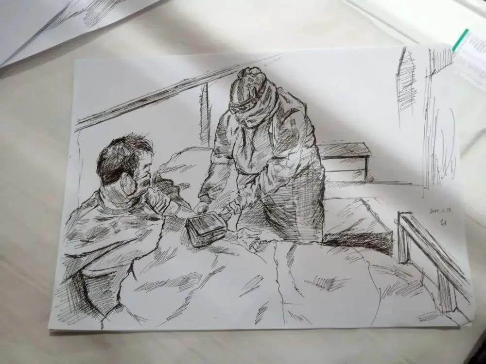 高三美術(shù)考生小彭剛進(jìn)方艙時(shí)不愛(ài)說(shuō)話,張碧霞就加了小彭的微信,休息時(shí)聊天談心,兩人成為無(wú)話不談的“跨年交”。小彭用畫筆畫下了張碧霞工作的樣子,還在醫(yī)療隊(duì)返程時(shí)特意來(lái)送張碧霞:“高考過(guò)后,就去貴州找你們。”