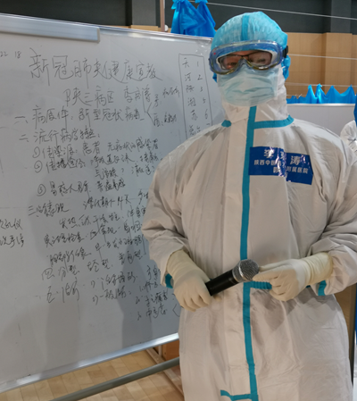 即使在輪休時間,他也經(jīng)常主動進(jìn)艙,為患者貼心宣講新冠知識。在艙外,他還要分析整理病例,協(xié)調(diào)處理困難,錄制宣教節(jié)目,常常工作至深夜。