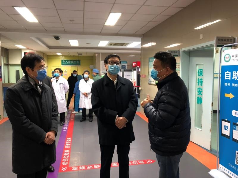 近日,根據(jù)國(guó)家中醫(yī)藥管理局關(guān)于新冠肺炎疫情防控工作的整體部署,局黨組成員、副局長(zhǎng),局應(yīng)對(duì)新冠肺炎疫情防控工作領(lǐng)導(dǎo)小組副組長(zhǎng)孫達(dá)一行,赴中國(guó)中醫(yī)科學(xué)院廣安門醫(yī)院、望京醫(yī)院、眼科醫(yī)院和中華中醫(yī)藥學(xué)會(huì)就疫情防控工作進(jìn)行督促檢查。指導(dǎo)組來(lái)到醫(yī)院門診、急診和發(fā)熱門診等場(chǎng)所,重點(diǎn)檢查醫(yī)院預(yù)檢分診流程、疑似患者處置流程、發(fā)熱門診改造情況,實(shí)地查看和了解中華中醫(yī)藥學(xué)會(huì)辦公場(chǎng)所和疫情防控工作機(jī)制、外地返京人員管理、外部人員管控、辦公區(qū)域管理、防控知識(shí)宣教等情況。