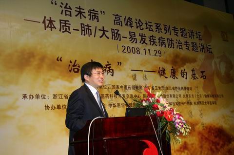 2008年11月29日,由國(guó)家中醫(yī)藥管理局、浙江省衛(wèi)生廳和浙江省中醫(yī)藥管理局共同主辦的“治未病”高峰論壇系列專(zhuān)題講壇—“體質(zhì)-肺/大腸-易發(fā)疾病群防治專(zhuān)題講壇”在杭州成功舉辦。