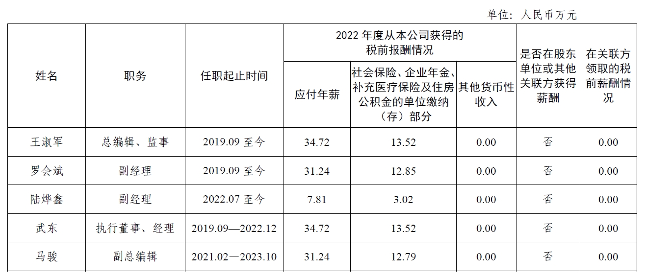 1. 上表披露薪酬為《中國中醫(yī)藥報(bào)》社有限公司負(fù)責(zé)人報(bào)告期內(nèi)全部應(yīng)發(fā)稅前薪酬(不含發(fā)放的以往年度績效薪酬)。其中,2022年應(yīng)付年薪由國家中醫(yī)藥管理局核定。