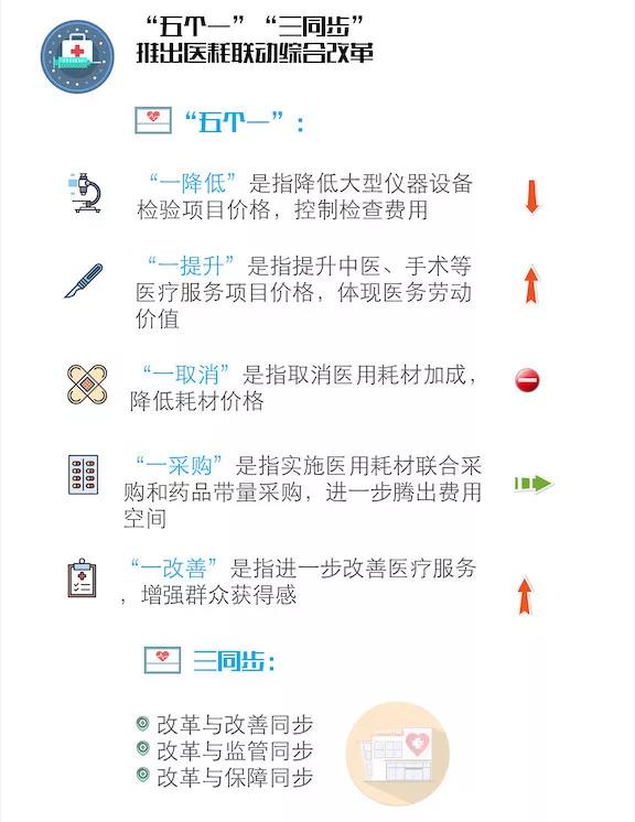 本輪改革與醫(yī)藥分開綜合改革一脈相承,方案主體內(nèi)容可以概述為“五個(gè)一”,即一降低、一提升、一取消、一采購(gòu)、一改善。