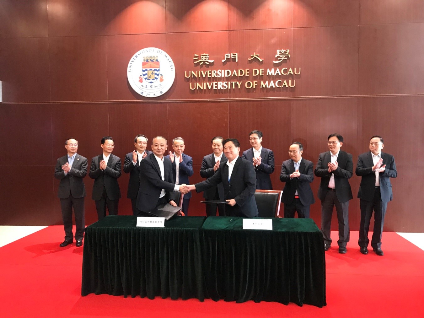 2018年11月,在四川省委書記彭清華,澳門中聯(lián)辦副主任孫達(dá),省委常委、成都市委書記范銳平,省委常委、常務(wù)副省長王寧,省委常委、秘書長王銘暉,副省長李云澤,澳門大學(xué)校長宋永華等見證下,田興軍局長與澳門大學(xué)中醫(yī)藥研究院院長王一濤簽署《澳門大學(xué)與四川省中醫(yī)藥科學(xué)院聯(lián)建中藥質(zhì)量研究與應(yīng)用實驗室協(xié)議書》。
