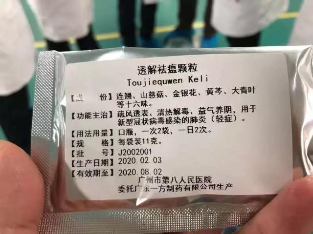 2月3日,省中醫(yī)藥局、省藥品監(jiān)督管理局組織對廣州市第八人民醫(yī)院“肺炎1號方”顆粒醫(yī)療機構(gòu)制劑應(yīng)急審批及臨床應(yīng)用進行聯(lián)合專家論證會。經(jīng)論證,基于“肺炎1號方”顆粒具有改善新型冠狀病毒感染的肺炎(輕癥)臨床癥狀和可能減少重型肺炎發(fā)生趨勢的療效,同意“肺炎1號方”顆粒按照廣東省醫(yī)療機構(gòu)傳統(tǒng)中藥制劑提出備案申請,并納入應(yīng)急審批程序準(zhǔn)予附條件備案。該制劑規(guī)范名稱為"透解祛瘟顆粒"。