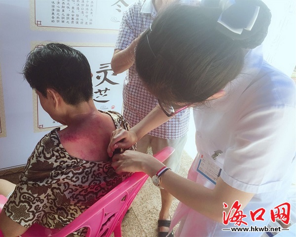 市民現(xiàn)場體驗(yàn)“刮痧”。