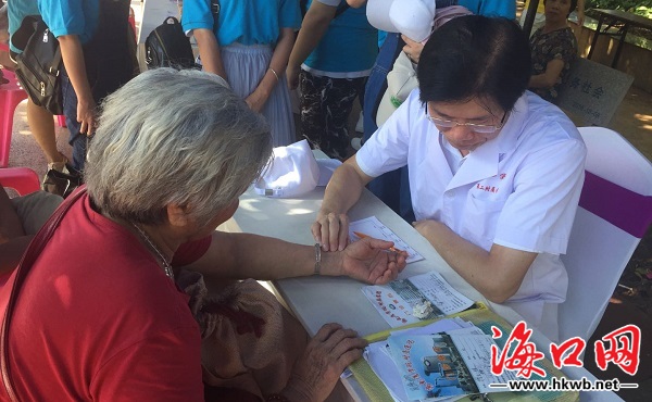 8時(shí)30分許,??诮鹋X公園廣場上人流匯聚。養(yǎng)生健身操、陳式太極拳、木蘭劍等養(yǎng)生保健節(jié)目的精彩表演吸人眼球,提前預(yù)熱了活動(dòng)氣氛。來自省中醫(yī)藥、海醫(yī)中醫(yī)學(xué)院、??谑兄嗅t(yī)院等多家醫(yī)院的10位中醫(yī)師組成義診團(tuán)隊(duì),現(xiàn)場為239名市民免費(fèi)提供把脈、測血壓等義診服務(wù),對市民關(guān)注的心血管系統(tǒng)疾病、消化系統(tǒng)疾病、骨關(guān)節(jié)疾病、風(fēng)濕類疾病等病種,從中醫(yī)學(xué)的防治上進(jìn)行了詳細(xì)地健康宣教。