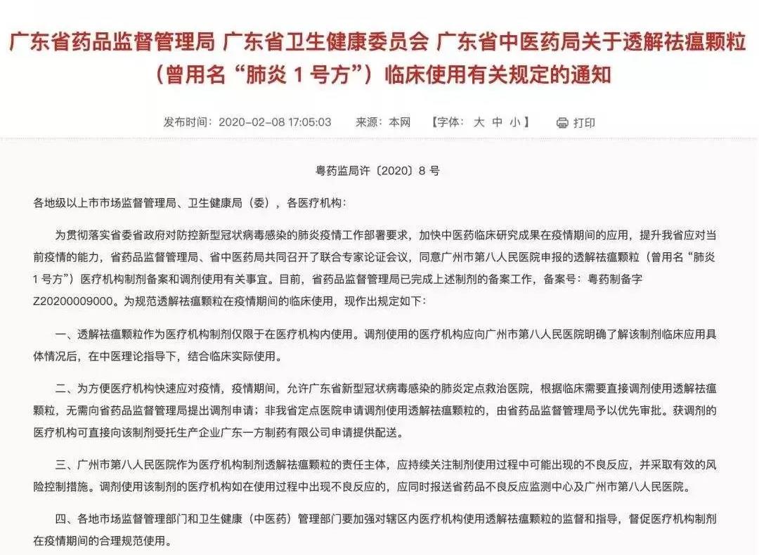 ° 2月7日,國(guó)家中醫(yī)藥管理局發(fā)布通知,正式將清肺排毒湯推薦給全國(guó)各地的醫(yī)療機(jī)構(gòu)辨證運(yùn)用。