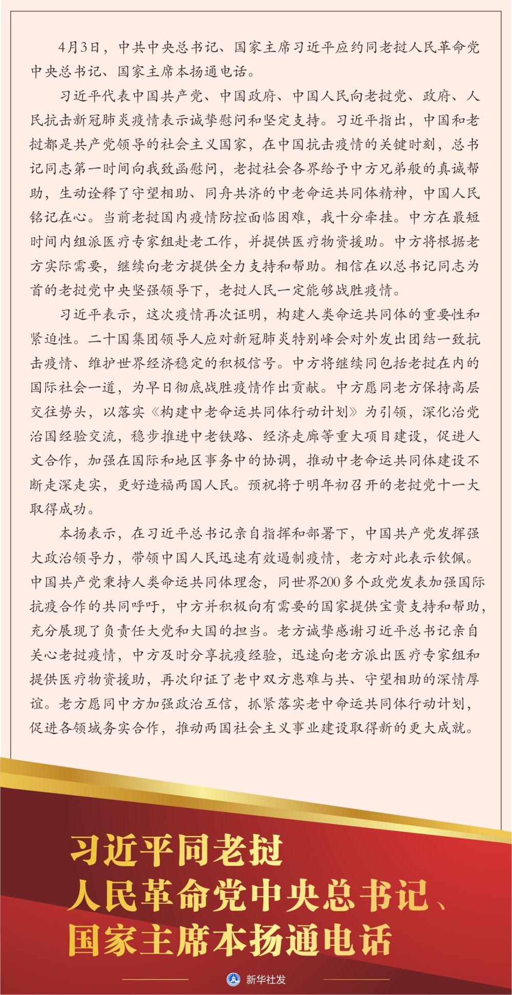 ↑圖表:習近平同老撾人民革命黨中央總書記、國家主席本揚通電話。新華社記者 陳琛 編制