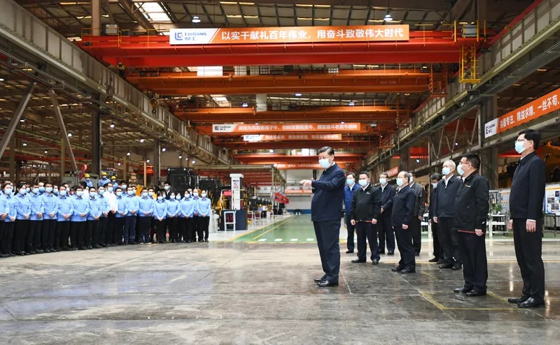 當(dāng)天下午,習(xí)近平來到柳州市考察調(diào)研。在廣西柳工集團(tuán)有限公司,習(xí)近平先后走進(jìn)公司展廳、研發(fā)實(shí)驗(yàn)中心、挖掘機(jī)裝配廠等,聽取企業(yè)發(fā)展情況介紹,察看主要產(chǎn)品展示,同企業(yè)職工和技術(shù)研發(fā)人員親切交談。習(xí)近平強(qiáng)調(diào),制造業(yè)高質(zhì)量發(fā)展是我國經(jīng)濟(jì)高質(zhì)量發(fā)展的重中之重,建設(shè)社會(huì)主義現(xiàn)代化強(qiáng)國、發(fā)展壯大實(shí)體經(jīng)濟(jì),都離不開制造業(yè),要在推動(dòng)產(chǎn)業(yè)優(yōu)化升級(jí)上繼續(xù)下功夫。只有創(chuàng)新才能自強(qiáng)、才能爭先,要堅(jiān)定不移走自主創(chuàng)新道路,把創(chuàng)新發(fā)展主動(dòng)權(quán)牢牢掌握在自己手中。要堅(jiān)持黨對(duì)國有企業(yè)的全面領(lǐng)導(dǎo),堅(jiān)持加強(qiáng)黨的領(lǐng)導(dǎo)和完善公司治理相統(tǒng)一,在深化企業(yè)改革中搞好黨的建設(shè),充分發(fā)揮黨組織在企業(yè)改革發(fā)展中的領(lǐng)導(dǎo)核心作用。