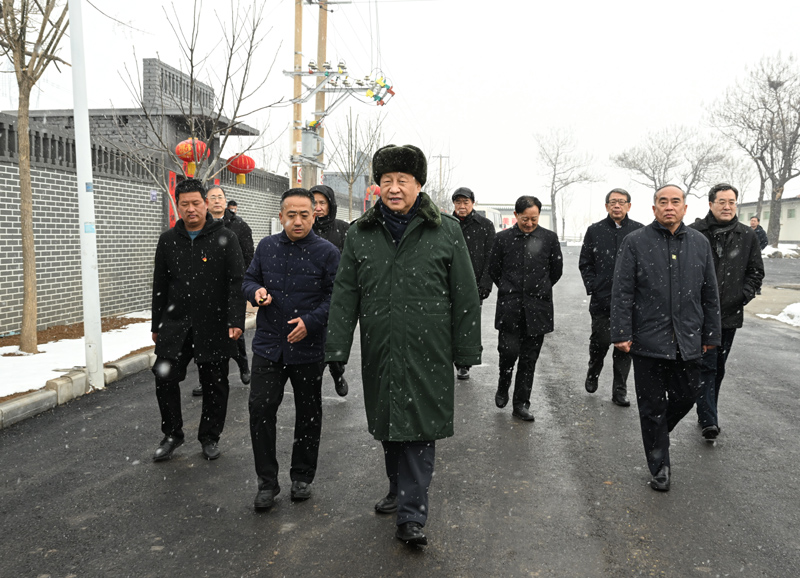 1月26日至27日,中共中央總書記、國家主席、中央軍委主席習(xí)近平來到山西,看望慰問基層干部群眾。這是26日下午,習(xí)近平冒雪在臨汾市霍州市師莊鄉(xiāng)馮南垣村考察。新華社記者 李學(xué)仁 攝