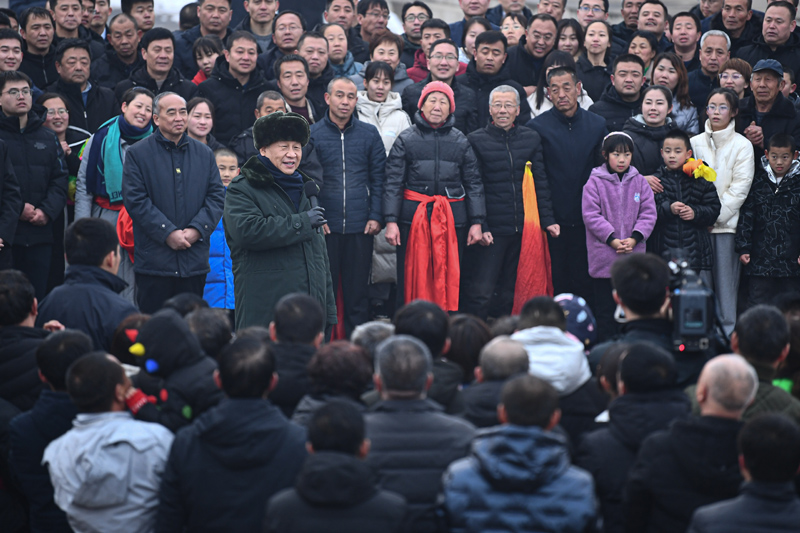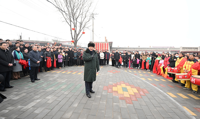 村文化廣場上十分熱鬧,村民們打起威風(fēng)鑼鼓、扭起秧歌歡慶佳節(jié)??吹娇倳泚砹耍藗兏吲d地歡呼起來。習(xí)近平對鄉(xiāng)親們說,我們黨的根本宗旨就是為人民群眾辦好事,為人民群眾幸福生活拼搏、奉獻、服務(wù)。我們?nèi)缙诖蜈A了脫貧攻堅戰(zhàn),如期實現(xiàn)了全面建成小康社會目標(biāo),現(xiàn)在踏上了全面建設(shè)社會主義現(xiàn)代化國家新征程。建設(shè)現(xiàn)代化國家離不開農(nóng)業(yè)農(nóng)村現(xiàn)代化,要繼續(xù)鞏固脫貧攻堅成果,扎實推進鄉(xiāng)村振興,讓群眾生活更上一層樓,在推進農(nóng)業(yè)農(nóng)村現(xiàn)代化中越走越有奔頭。