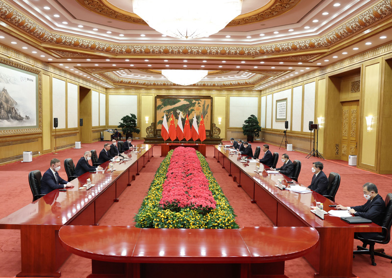 2月6日上午,國家主席習近平在北京人民大會堂會見來華出席北京2022年冬奧會開幕式的波蘭總統(tǒng)杜達。新華社記者 劉衛(wèi)兵 攝