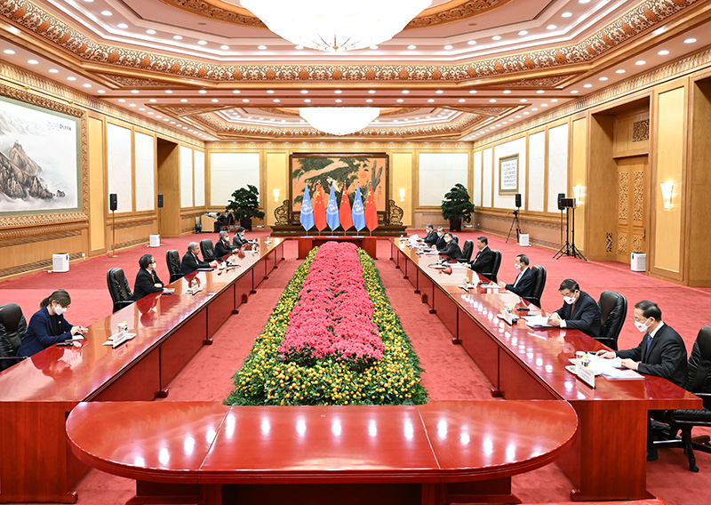 2月5日下午,國家主席習近平在北京人民大會堂會見來華出席北京2022年冬奧會的聯(lián)合國秘書長古特雷斯。新華社記者 李響 攝