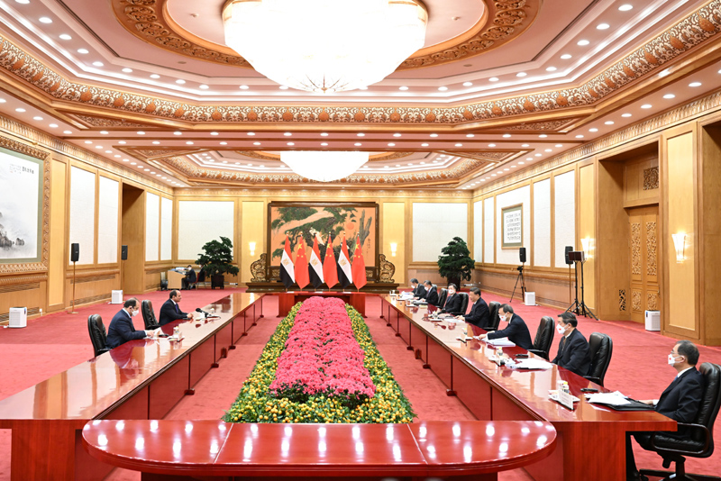 習(xí)近平指出,近年來(lái)中埃政治互信更加鞏固,務(wù)實(shí)合作成果豐碩,團(tuán)結(jié)抗疫亮點(diǎn)紛呈,中埃全面戰(zhàn)略伙伴關(guān)系成為中國(guó)同阿拉伯、非洲、發(fā)展中國(guó)家團(tuán)結(jié)合作、互利共贏的典范。當(dāng)今世界正在經(jīng)歷百年未有之大變局,中埃兩國(guó)在捍衛(wèi)自身利益、追求共同發(fā)展、增進(jìn)人民福祉、促進(jìn)世界公平正義的事業(yè)中,理念相通,戰(zhàn)略契合。雙方應(yīng)當(dāng)攜手努力,堅(jiān)定朝著新時(shí)代構(gòu)建中埃命運(yùn)共同體的目標(biāo)邁進(jìn)。