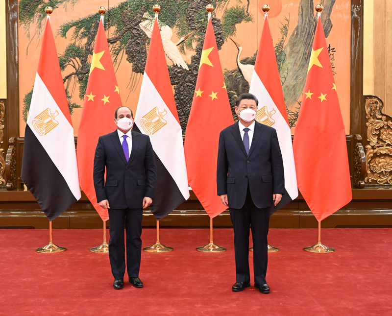 習(xí)近平強(qiáng)調(diào),雙方要繼續(xù)在涉及彼此核心利益和重大關(guān)切問(wèn)題上相互支持,中方支持埃及走符合自身國(guó)情的發(fā)展道路,推進(jìn)民族復(fù)興大業(yè)。雙方要深化互利合作,繼續(xù)推動(dòng)共建“一帶一路”倡議同埃及“2030愿景”對(duì)接,推進(jìn)蘇伊士運(yùn)河走廊開發(fā)等合作項(xiàng)目,就落實(shí)全球發(fā)展倡議開展合作。去年兩國(guó)合作建成非洲第一條新冠疫苗聯(lián)合生產(chǎn)線,深化了雙方戰(zhàn)略合作內(nèi)涵。雙方要繼續(xù)團(tuán)結(jié)抗疫,中方愿繼續(xù)向埃及提供疫苗支持,擴(kuò)大疫苗聯(lián)合生產(chǎn)等合作,助力埃及成為非洲疫苗生產(chǎn)中心,共同為促進(jìn)疫苗在發(fā)展中國(guó)家可及性和可擔(dān)負(fù)性作出貢獻(xiàn)。雙方還要共同引領(lǐng)中阿(拉伯)、中非集體合作,加快打造面向新時(shí)代的中阿命運(yùn)共同體,推動(dòng)中非合作論壇“九項(xiàng)工程”取得更多早期收獲,促進(jìn)非洲發(fā)展振興。