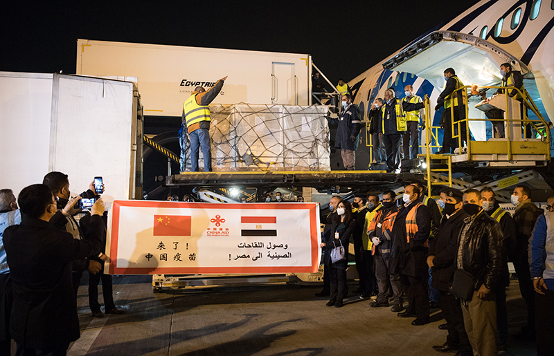 2021年2月23日,中國援助埃及的首批新冠疫苗抵達(dá)開羅國際機(jī)場。新華社記者 鄔惠我 攝