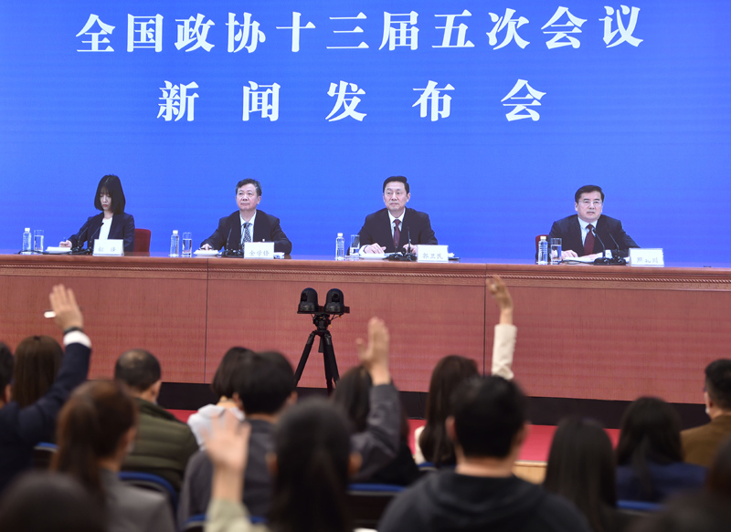 3月3日,全國(guó)政協(xié)十三屆五次會(huì)議新聞發(fā)布會(huì)在北京人民大會(huì)堂舉行。為有效防控疫情,本次新聞發(fā)布會(huì)沿用前兩年做法,采用網(wǎng)絡(luò)視頻的形式舉行,主會(huì)場(chǎng)設(shè)在人民大會(huì)堂,分會(huì)場(chǎng)設(shè)在梅地亞中心。