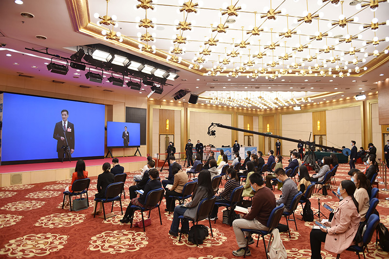 3月4日,全國政協(xié)十三屆五次會議第一場“委員通道”采訪活動在北京人民大會堂新聞發(fā)布廳舉行。這是記者在分會場通過網(wǎng)絡(luò)視頻方式提問。