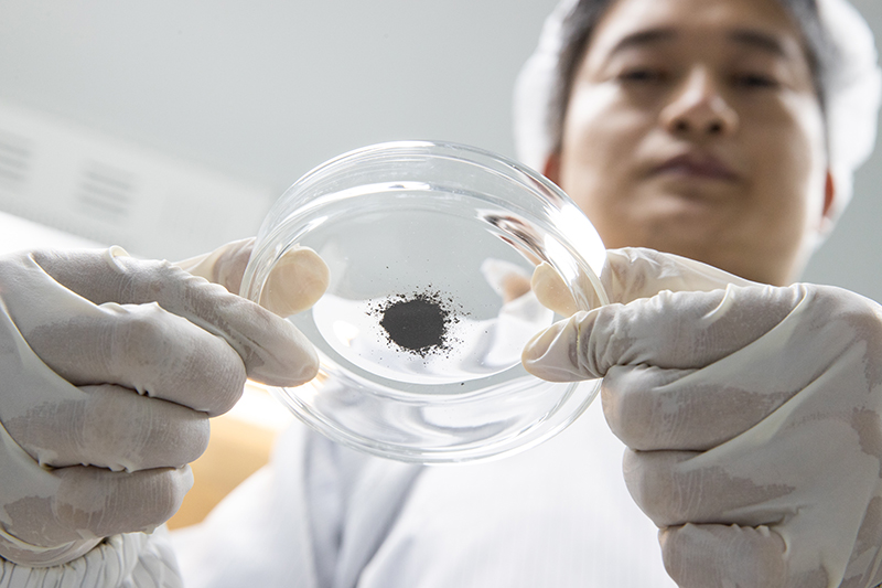 在中科院地質(zhì)與地球物理研究所月球樣品潔凈室,田恒次副研究員在處理月球樣品(2021年10月15日攝)。新華社記者 金立旺 攝
