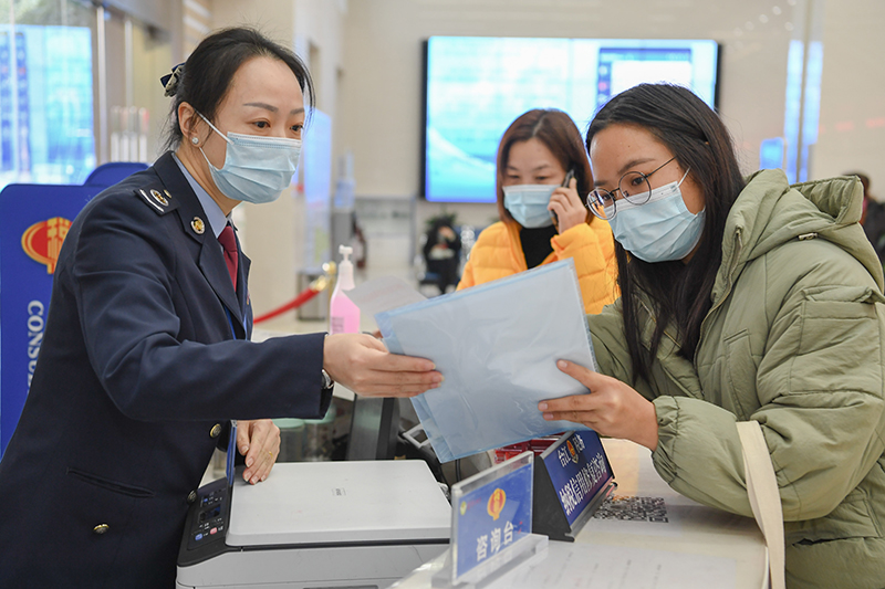在國家稅務(wù)總局福州市臺江區(qū)稅務(wù)局辦稅服務(wù)廳,納稅人在納稅信用修復(fù)咨詢窗口咨詢涉稅業(yè)務(wù)(2021年1月15日攝)。新華社記者 宋為偉 攝