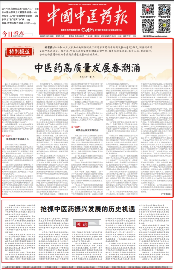 東風(fēng)喚得春潮涌。如今,錨定高質(zhì)量發(fā)展目標(biāo),中醫(yī)藥人正以更大的決心和一往無前的精神,將宏偉藍(lán)圖化作中醫(yī)藥傳承創(chuàng)新發(fā)展的實(shí)干實(shí)效。