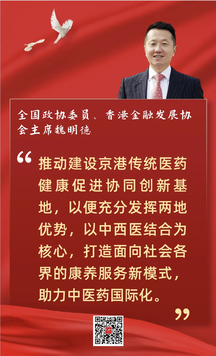 中醫(yī)藥作為傳統(tǒng)醫(yī)藥的杰出代表,是中華文明的瑰寶。香港作為國際金融、貿(mào)易和科研中心,擁有國際化資源整合能力與標(biāo)準(zhǔn)化推廣經(jīng)驗。兩會期間,全國政協(xié)委員、香港金融發(fā)展協(xié)會主席魏明德建議推動建設(shè)京港傳統(tǒng)醫(yī)藥健康促進(jìn)協(xié)同創(chuàng)新基地,以便充分發(fā)揮兩地優(yōu)勢,以中西醫(yī)結(jié)合為核心,打造面向社會各界的康養(yǎng)服務(wù)新模式,助力中醫(yī)藥國際化。