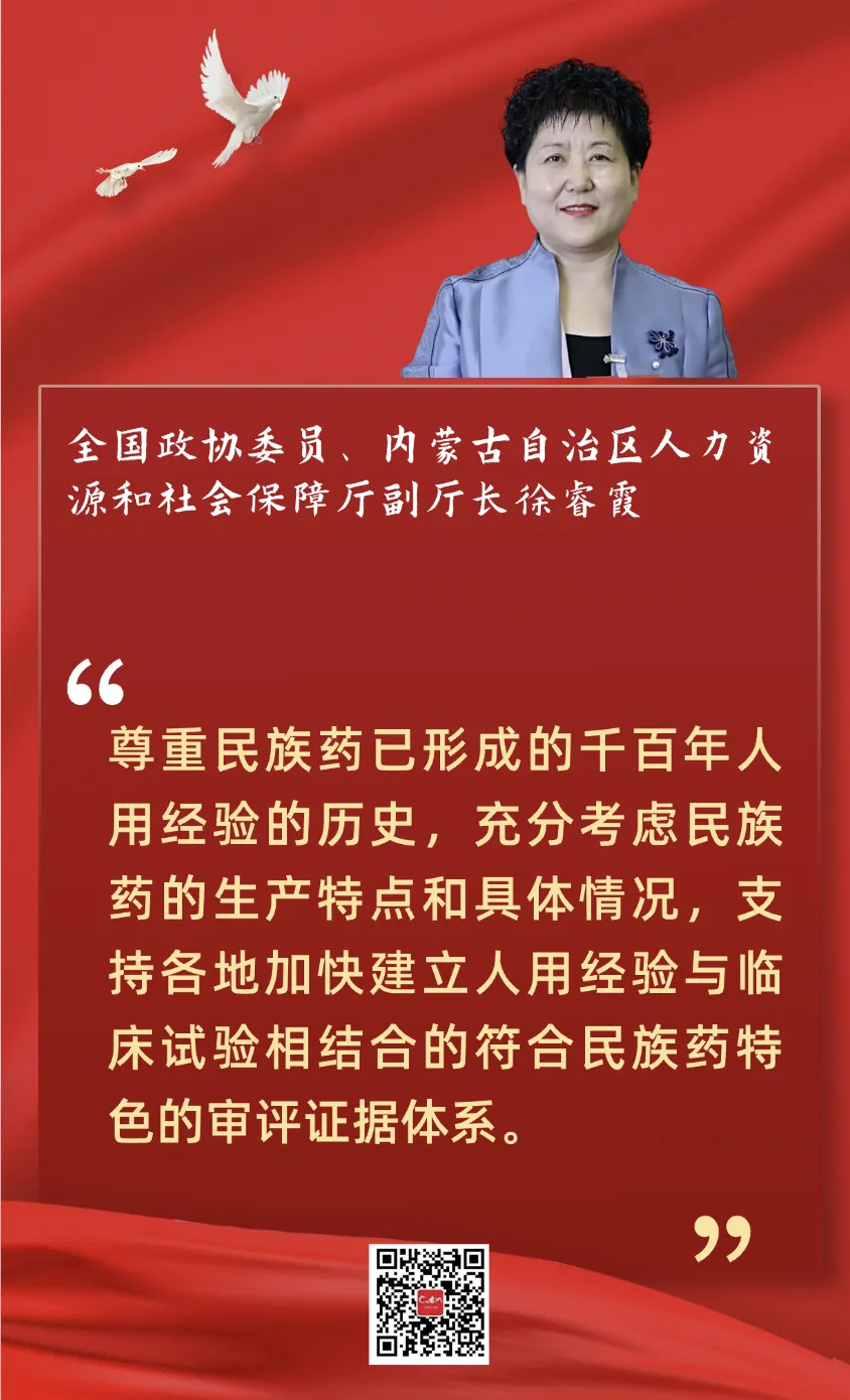 民族醫(yī)藥是傳統(tǒng)中醫(yī)藥的重要組成部分,但民族藥發(fā)展仍面臨一些突出問題,傳承保護(hù)發(fā)展民族藥任重道遠(yuǎn)。全國(guó)政協(xié)委員、內(nèi)蒙古自治區(qū)人力資源和社會(huì)保障廳副廳長(zhǎng)徐睿霞提出,要加快對(duì)民族醫(yī)藥傳承保護(hù)。