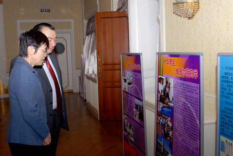 衛(wèi)生部副部長(zhǎng)兼國(guó)家中醫(yī)藥管理局局長(zhǎng)佘靖在第三屆全國(guó)民族醫(yī)藥工作會(huì)議上認(rèn)真參觀民族醫(yī)藥成果展