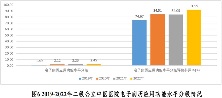 二是信息化支撐作用不斷強(qiáng)化。2023年,全國(guó)二級(jí)公立中醫(yī)醫(yī)院電子病歷系統(tǒng)應(yīng)用水平為2.71級(jí),較2022年提高0.26級(jí)。其中,全國(guó)1115家二級(jí)公立中醫(yī)醫(yī)院電子病歷系統(tǒng)應(yīng)用水平達(dá)到3級(jí)及以上,實(shí)現(xiàn)醫(yī)院部門(mén)間數(shù)據(jù)交換,初步滿足醫(yī)療決策支持的要求;204家二級(jí)公立中醫(yī)醫(yī)院達(dá)到4級(jí)及以上,實(shí)現(xiàn)全院信息共享和初級(jí)醫(yī)療決策支持。