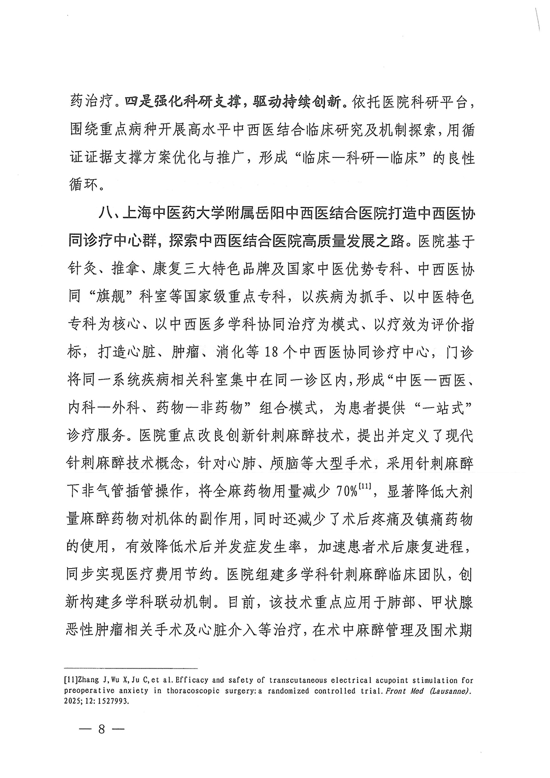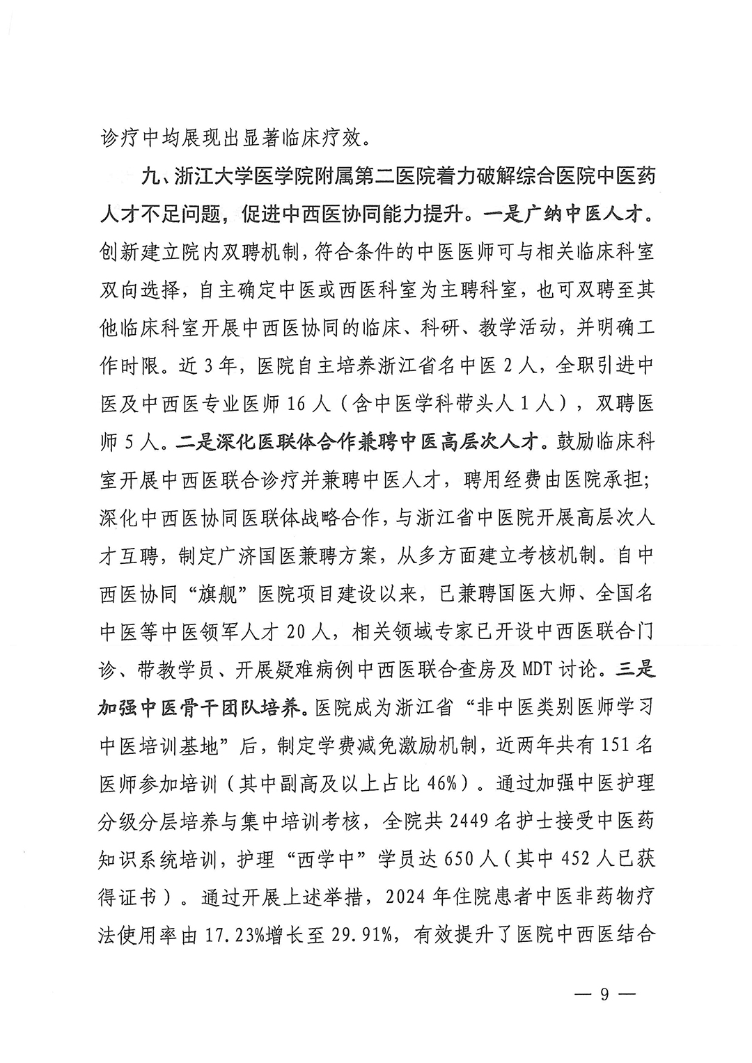 中西醫(yī)協(xié)同“旗艦”醫(yī)院項目啟動以來,各項目單位深入研究、積極探索,創(chuàng)造性地開展工作,形成了很多好的經(jīng)驗和做法,包括創(chuàng)新中西醫(yī)協(xié)同服務(wù)模式、增強(qiáng)中西醫(yī)結(jié)合服務(wù)能力、提升重大疑難疾病中西醫(yī)結(jié)合防治水平、開展中西醫(yī)協(xié)同科研攻關(guān)、強(qiáng)化高水平復(fù)合型中西醫(yī)結(jié)合人才培養(yǎng)和隊伍建設(shè)等。